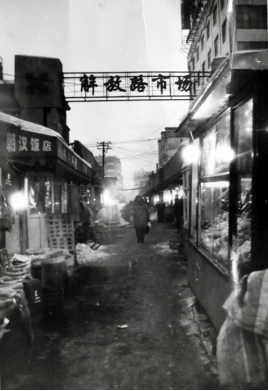 1945年8月牡丹江光复,同年11月,这条饱经沧桑的街道被民主政府正式命名为“解放路”,寓意着城市的新生与解放。解放初期的牡丹江,完全是一个烂摊子:日本人控制下的大工业、大商号纷纷倒闭或被有计划地破坏,而大部分民族工商业者,对中国的政策还不够认识和了解,等待观望,不敢恢复生产和营业,有的还为躲避战乱而关闭企业甚至弃厂弃店。整个社会百业萧条,商品奇缺,金融秩序混乱,物价不稳,人心难安。在战火中饱受摧残的解放路,两侧建筑所剩无几,面貌凋敝破败。在党和政府的领导下,牡丹江人民迅速医治战争创伤,修复工厂、恢复交通、稳定物价、打击黑市、恢复生产,从外地调运粮食和燃料,短时期就稳定了社会秩序,百业萧条的城市逐步焕发活力。